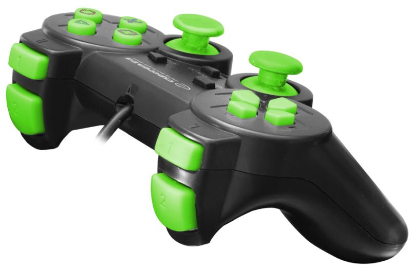 Wspaniale współpracuje z zaawansowanymi grami. Ergonomiczny kształt ułatwia trzymanie i nie powoduje zmęczenia dłoni w czasie gry. 2 analogowe manipulatory, 12 przycisków akcji (w tym 2 przyciski w manipulatorach), 2 tryby pracy (analogowy i cyfrowy) oraz 8 kierunkowy krzyżak zapewniają łatwy dostęp do większości funkcji w grach. Silniki wibracyjne wytwarzają dodatkowe efekty generowane przez gry. Wymaga złącza USB 2.0.