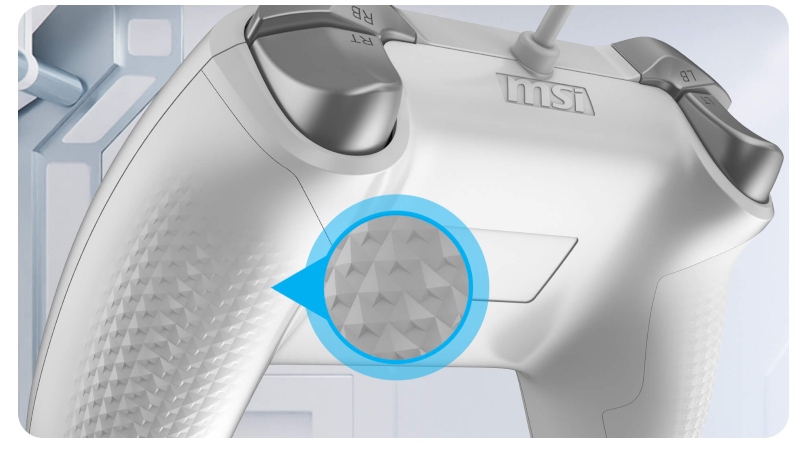 Kontroler zaprojektowano z myślą o graczach, którzy wymagają zarówno wysokiej precyzji, jak i ergonomii. MSI FORCE GC200 zapewni Ci wyjątkową przewagę w grach za sprawą spustów wykorzystujących efekt Halla, gwarantującym wyrazistą, responsywną reakcję, a także dzięki zaawansowanym, analogowym drążkom, które oferują wyjątkowo płynną i dokładną kontrolę nad przebiegiem gry. Immersyjne, haptyczne sprzężenie zwrotne wyzwalane przez dwa silniki wibracyjne pogłębia wszystkie sensoryczne doznania, a antypoślizgowy grip z wyraźną teksturą powierzchni zapewnia wysoki komfort gry oraz pewność chwytu podczas każdej, nawet najbardziej intensywnej rozgrywki.
