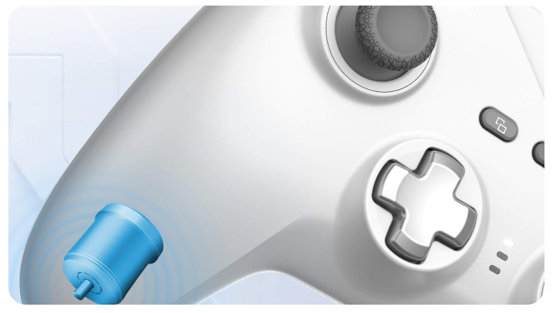 Wymienny D-Pad Antypoślizgowa struktura uchwytów Dwa silniki wibracyjne Dedykowana aplikacja Triggery z magnetycznym efektem Halla |