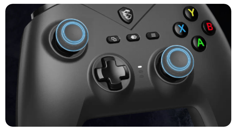 Joysticki w gamepadzie MSI Force GC200 zapewniają precyzję, która przekłada się na zwycięstwa. Zaprojektowane z myślą o bezbłędnym, płynnym i dokładnym ruchu thumbsticki reagują natychmiast na każdy gest, oferując niezwykle responsywną i precyzyjną kontrolę. Idealnie sprawdzają się przy ciągłych manewrach i płynnych wejściach, dzięki czemu możesz realizować nawet najbardziej wymagające akcje bez żadnych opóźnień. To ergonomiczne, dopracowane w każdym detalu rozwiązanie, które realnie zwiększa efektywność rozgrywki i pozwala w pełni wykorzystać potencjał MSI Force GC200.