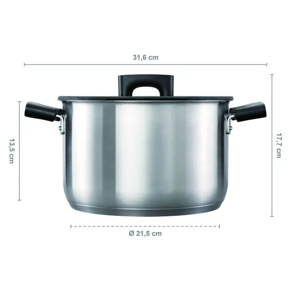 - Grube 3-warstwowe dno efektywnie i równomiernie rozprowadza ciepło.