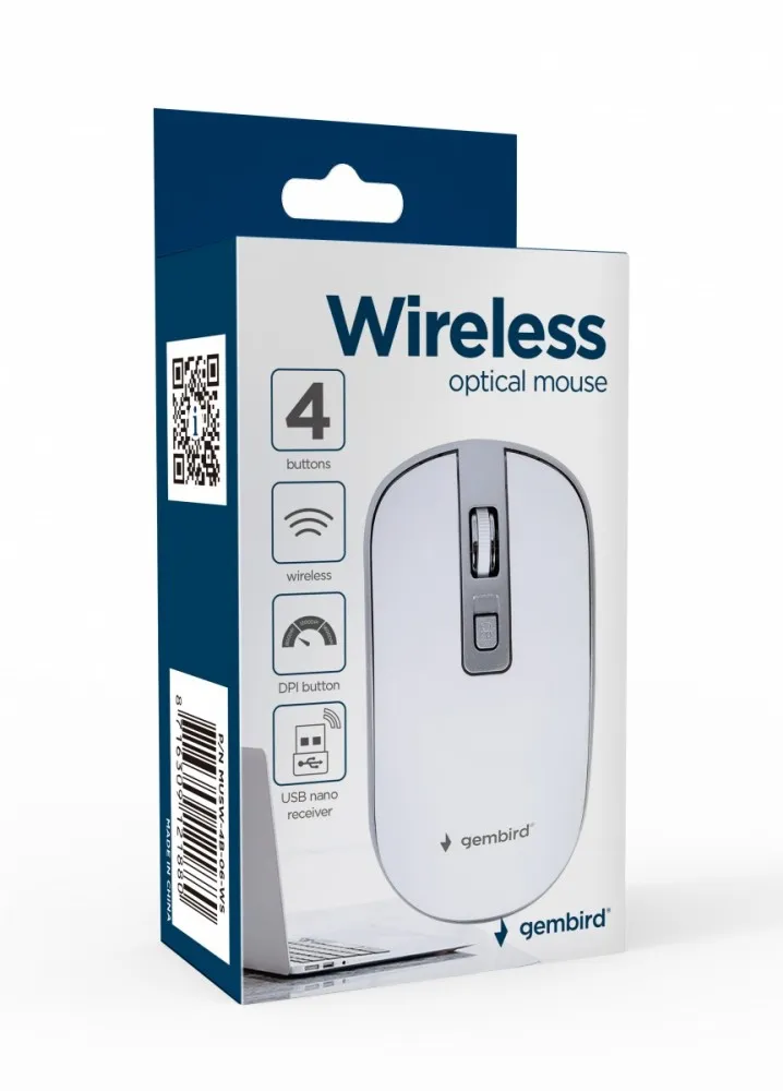 Gembird Mysz optyczna bezprzewodowa, kolor biały, nano odbiornik