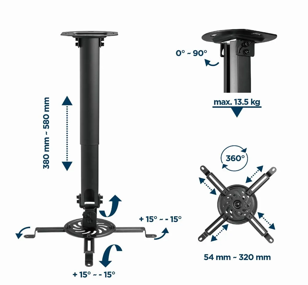 Uchwyt sufitowy do projektora/rzutnika, regulowany, do 13kg