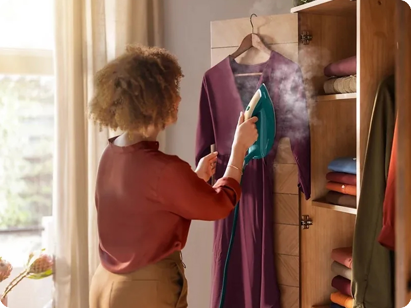 Generator pary został zaprojektowany z myślą o maksymalnej wygodzie użytkownika – posiada wyjmowany zbiornik na wodę o pojemności 1800 ml, który można napełniać nawet w trakcie prasowania. Możliwość używania zwykłej wody z kranu oraz system Easy De-Calc znacznie ułatwiają konserwację i przedłużają żywotność urządzenia. Dzięki funkcji prasowania w pionie z łatwością odświeżysz garnitury, płaszcze czy zasłony bez konieczności rozkładania deski. Ergonomiczny otwarty uchwyt i przewody o długości ponad 1,6 m zapewniają pełną swobodę ruchów.