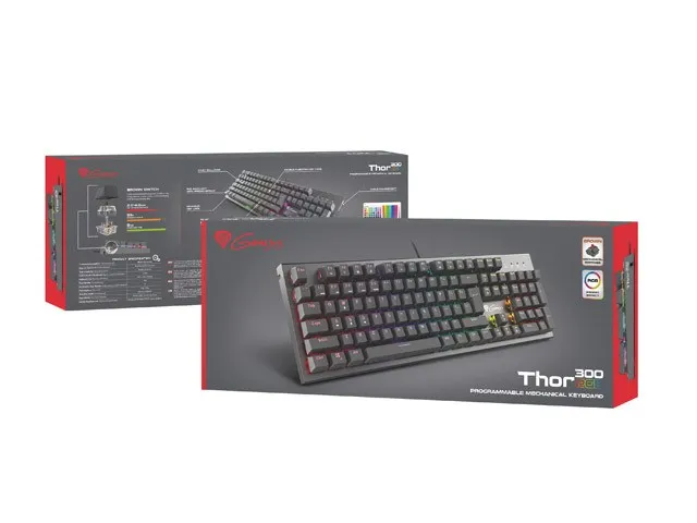Thor 300 poszerza Twoje możliwości w rozgrywkach wirtualnych. Wysokiej jakości przełączniki mechaniczne o świetnej specyfikacji dbają o Twój najlepszy performance w ulubionej grze. Różne rozwiązania takie jak organizer kabla w połączeniu ze świetnym designem z podświetleniem RGB sprawiają, że otrzymujemy klawiaturę, która nie tylko uwalnia Twój potencjał, ale również usatysfakcjonuje nawet najbardziej wybredne oko.