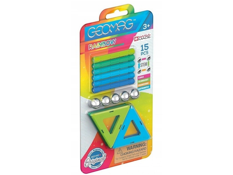 Opakowanie Rainbow skrywa 15 elementów o iście tęczowych barwach utrzymanych w ciepłej tonacji – przeważają kolory zimne utrzymane w niebiesko-zielonej kolorystyce. Wśród klocków znaleźć można 6 patyczków, 5 kulek i 4 płytki w kształcie trójkątów, jakie z pewnością staną się inspiracją do ułożenia zupełnie nowych konstrukcji. Zestaw powstał w oparciu o technologię STEM, która wspiera nauczanie poprzez doświadczanie.