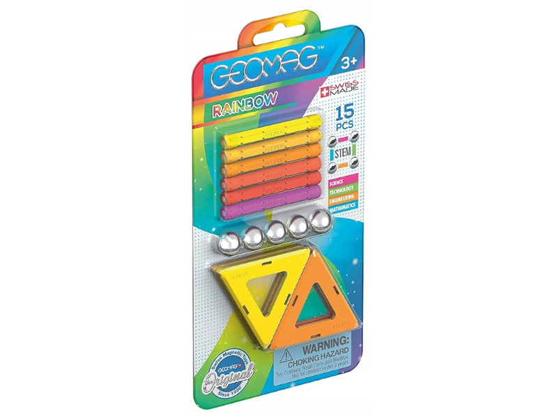 Opakowanie Rainbow skrywa 15 elementów o iście tęczowych barwach utrzymanych w ciepłej tonacji – przeważa kolor żółty, pomarańczowy i czerwony. Wśród klocków znaleźć można 6 patyczków, 5 kulek i 4 płytki w kształcie trójkątów, jakie z pewnością staną się inspiracją do ułożenia zupełnie nowych konstrukcji. Zestaw powstał w oparciu o technologię STEM, która wspiera nauczanie poprzez doświadczanie.