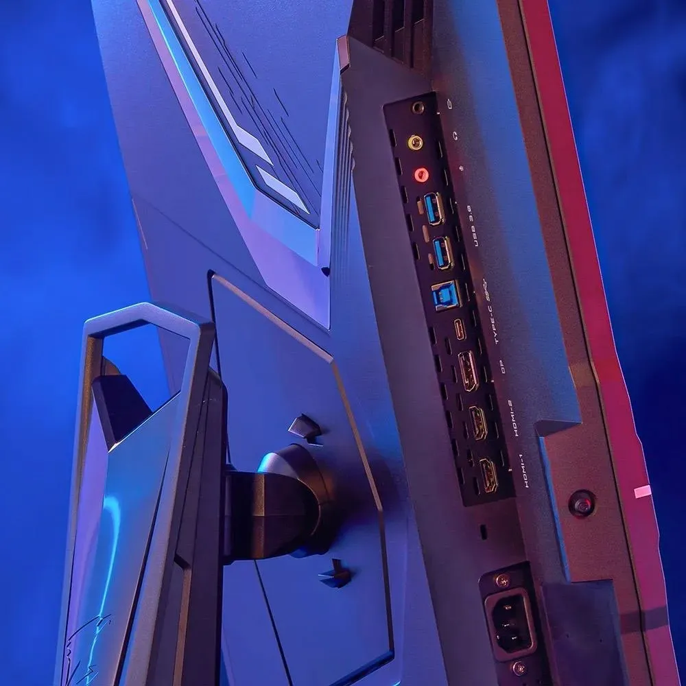 - Panel 31,5 UHD (rozdzielczość 3840 x 2160) w proporcjach 16:9 z częstotliwością odświeżania 144 Hz dla płynnej rozgrywki.