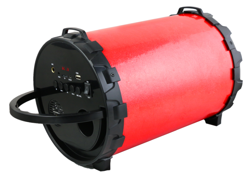 Ważną cechą zestawu jest obudowa, która bez wątpienia wpływa na jakość brzmienia. Wydobywający się dźwięk z głośnika jest niezwykle czysty. Na panelu przednim znajduje się wyświetlacz informacyjny LED, włacznik, port USB, wejście AUX, wejście MONO i slot na karty pamięci microSD oraz gniazdo microUSB służące do ładowania.