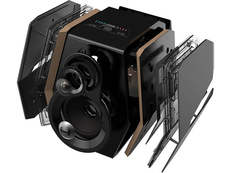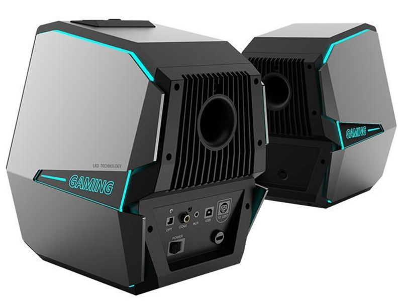 Głośniki połączyły praktyczny, a zarazem pomysłowy design. Zwracają uwagę nowoczesnym, barwnym charakterem. Ich kolorowe podświetlenie LED nadaje im ciekawego wyglądu. Możesz stworzyć swój własny, gamingowy charakter, wybierając spośród 11 dostępnych efektów świetlnych. Dodatkowo konstrukcja pod kątem 10 stopni do góry dostarczy Ci jeszcze więcej immersyjnych wrażeń. Budowa o interesującym kształcie jest niebanalnym dodatkiem do gamingowego wystroju.