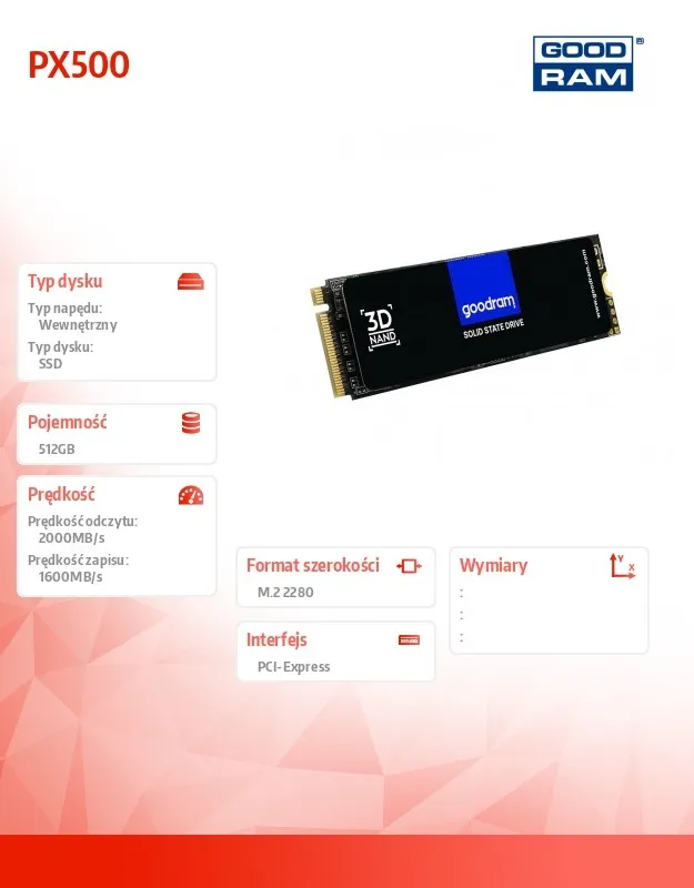 GOODRAM Dysk PX500 512GB M.2 PCIe 3x4 NVMe 2280