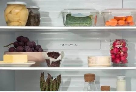 System wentylacji MultiFlow 360° równomiernie rozprowadza powietrze w komorze chłodziarki, aby zapewnić optymalną cyrkulację powietrza i najlepsze warunki przechowywania żywności.