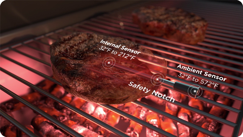 Termometr wyposażony jest w wodoodporną sondę, która umożliwia precyzyjny pomiar temperatury wewnętrznej i zewnętrznej mięsa. Dzięki wysokiej dokładności (±1,0°C), masz pewność, że mięso jest gotowe dokładnie tak, jak chcesz. Pomiar temperatury odbywa się co 3 sekundy, co sprawia, że informacje o stanie mięsa są zawsze aktualne.