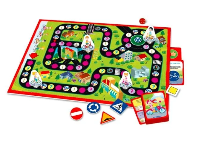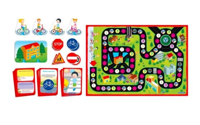 Planszowa gra edukacyjna, aby poznać podstawowe zasady ruchu drogowego: od znaków drogowych do kodeksu drogowego.