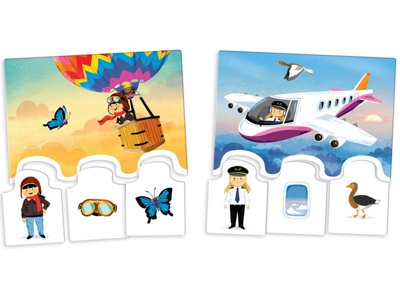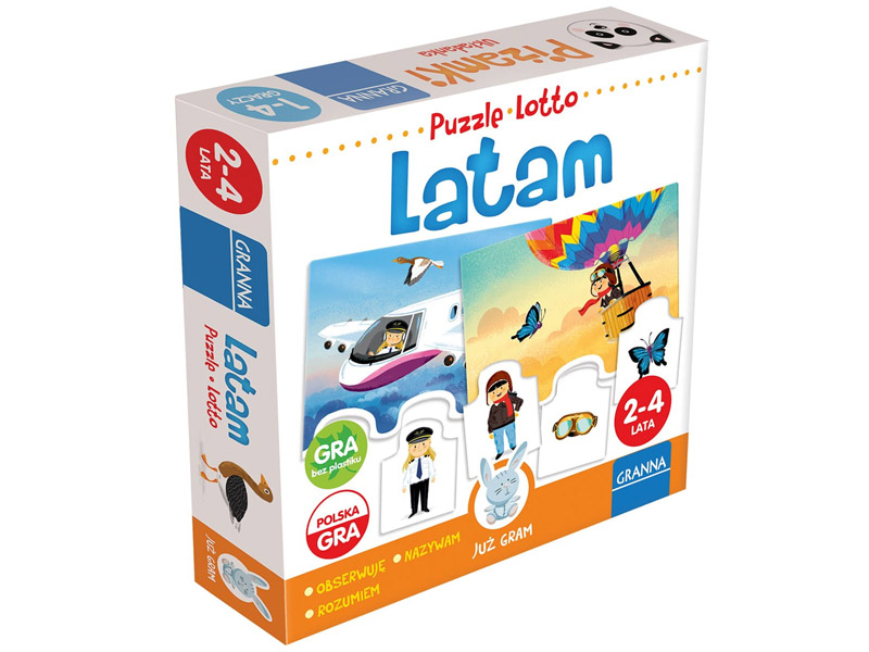 Puzzle lotto to duża, kolorowa układanka z ilustracjami przedstawiającymi różne sceny związane z lataniem. Składa się ona z sześciu układanek, których elementy należy dopasować do danej ilustracji. W roli głównej zobaczycie tutaj: narty, helikopter, spadochron, samolot, balon oraz rakietę. Zestaw pozwala na rozój motoryki dziecka, ćwiczyć spostrzegawczość oraz cierpliwość. Niech Twoje dziecko odkryje sekrety ukryte w powietrznym świecie.