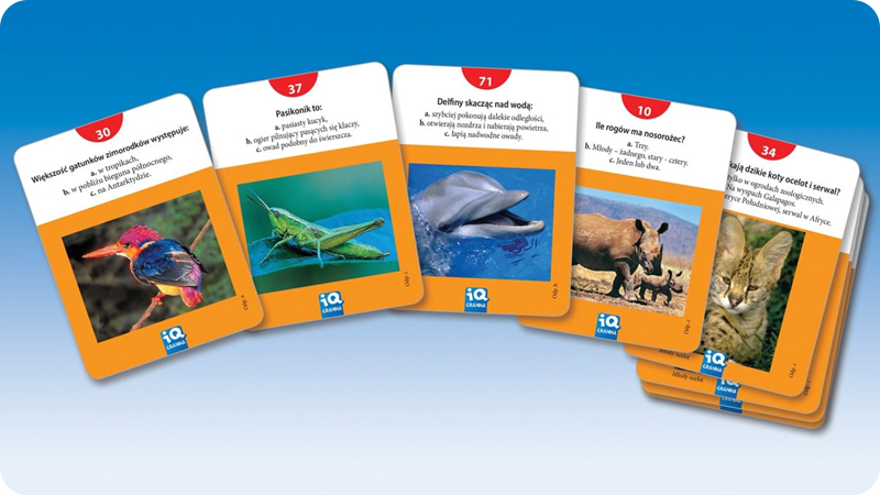 Quiz zoologiczny to wspaniała, emocjonująca zabawa przy okazji której dziecko zdobędzie konkretną wiedzę dotyczącą świata zwierząt. W quizie liczy się nie tylko wiedza, ale i umiejętność podejmowania ryzyka – to gracz decyduje, ile punktów będzie warta jego odpowiedź. Gra uczy realnej oceny swojej wiedzy.