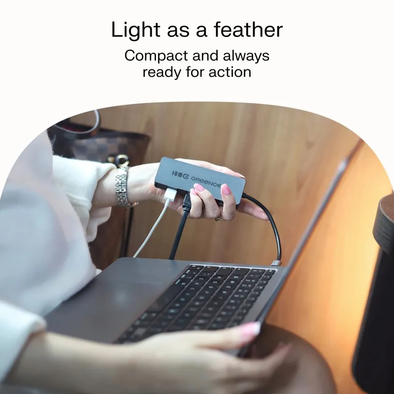 Zamień jeden port USB-C na 4 dodatkowe porty USB-A 3.0. Podłącz wszystko, co potrzebne do pracy i nie tylko od pendriveów, przez akcesoria, po dyski zewnętrzne. Wygodnie, bez przepinania.