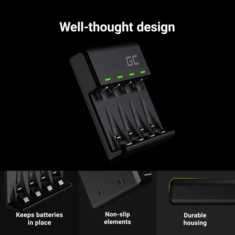 - Skomponuj swój własny zestaw i ładuj jednocześnie od jednego do czterech akumulatorów AA lub AAA
