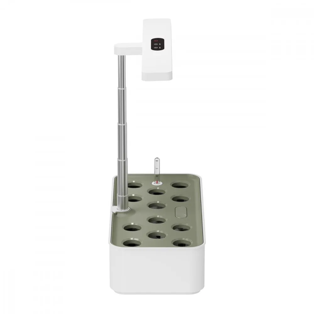 Doniczka SMART GB133 pozwala na jednoczesną uprawę aż 12 roślin, a jej obsługa jest niezwykle prosta. Wystarczy umieścić pojemniki z nasionami w specjalnych otworach, uzupełnić suplementy wzrostu oraz wodę, dostosować wysokość oświetlenia, a inteligentny system zajmie się resztą. Cicha pompa, włączająca się cyklicznie co 105 minut na 15 minut, dba o odpowiednie napowietrzenie i cyrkulację wody, a wskaźnik poziomu wody przypomina o konieczności jej uzupełnienia. To sprawia, że uprawa jest niemal bezobsługowa.