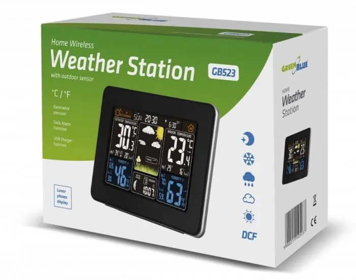 GreenBlue Stacja pogody kolorowa bezprzewodowa DCF GB523 DCF fazy księżyca
