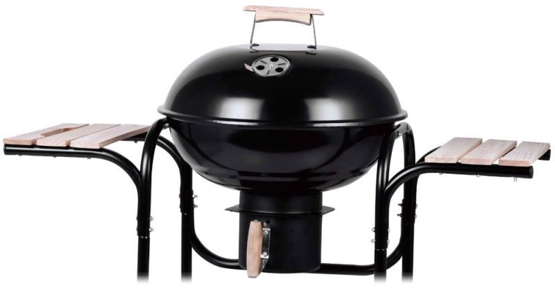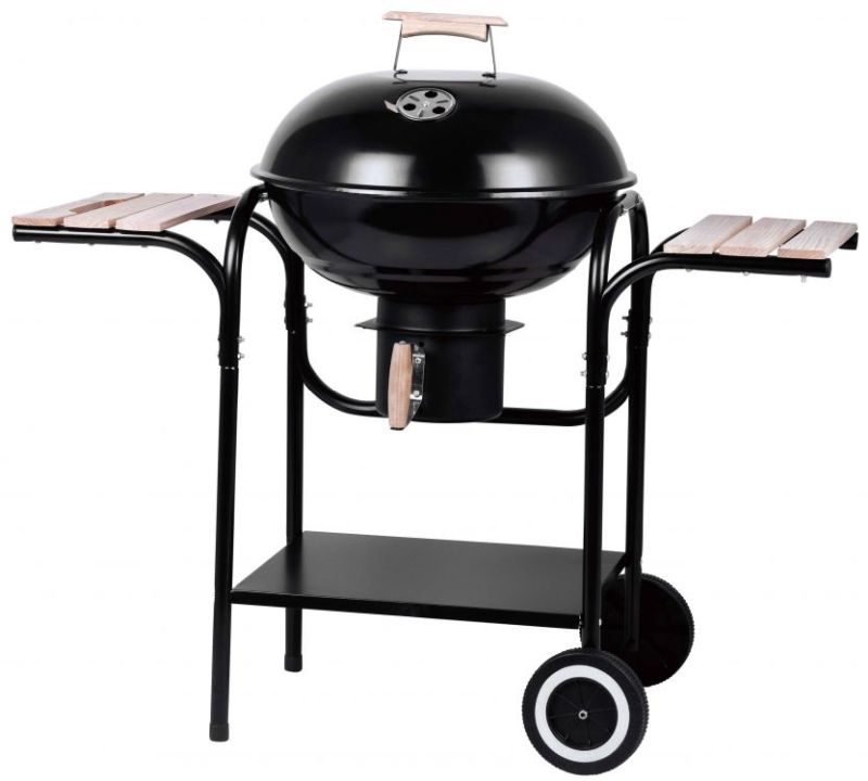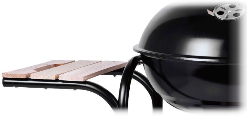 Grill posiada drewniane półeczki na akcesoria, na dole znajduję się duża półka idealna na przechowywanie węgla czy brykietu. Cała konstrukcja jest bardzo stabilna, dodatkowo grill posiada kółka które umożliwiają przestawianie nawet rozpalonego grilla.