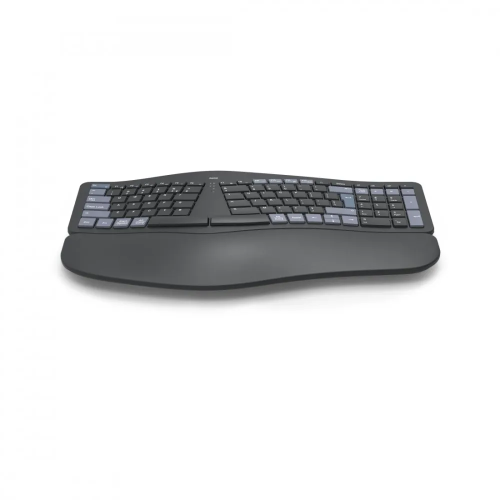 - Ergonomiczna klawiatura wspiera naturalną pozycję ciała i zapobiega w ten sposób przeciążeniom i bólowi w okolicy ramion, barków i karku