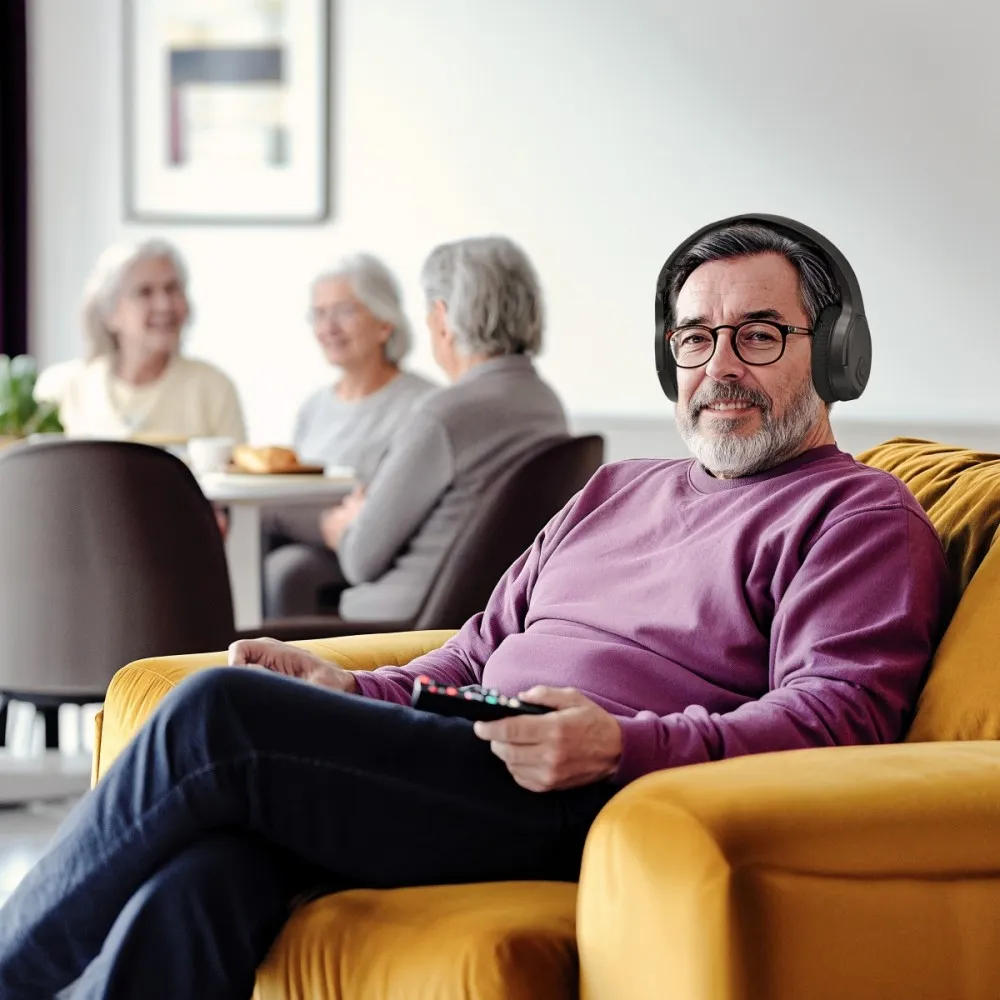 Natychmiastowe łącze bezprzewodowe 2,4 GHz: gdy klucz sprzętowy USB-A jest podłączony do telewizora, słuchawki zawsze łączą się automatycznie