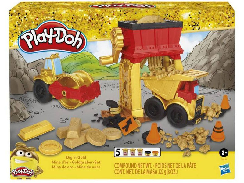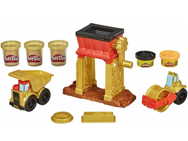 Wciel się w dzielnego poszukiwacza złota i wysil swoją wyobraźnie, aby dokonać niemożliwego! Zestaw Play-Doh Kopalnia złota posiada dwie zabawki konstrukcyjne oraz szlifierkę, aby dziecko mogło poczuć się jak w prawdziwej kopalni złota. Zmiel samorodki złota za pomocą młynka oraz nietoksycznej masy Play-Doh w kolorze błyszczącego złota. Następnie przewieź wszystko wywrotką oraz utoruj drogę do świetnej zabawy walcem parowym, a także nawierzchnią budowlaną Play-Doh w kolorze asfaltu. Zestaw sprawdzi się jako prezent dla dzieci od 3 roku życia, które uwielbiają zabawy kreatywne oraz modelowanie z gliny. Zestaw składa się ze szlifierki do złota, wywrotki, walca parowego, formy do sztabek złota, formy na złote monety oraz 5 puszek masy do modelowania marki Play-Doh.