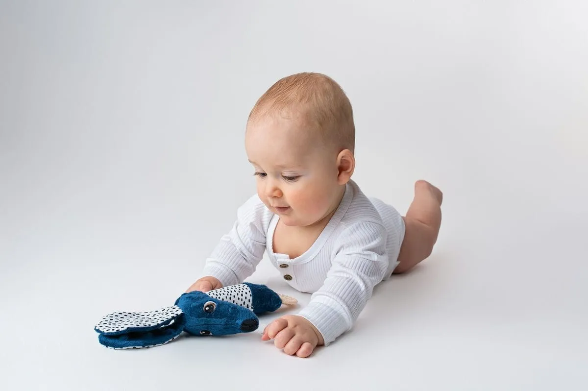 W główce Jamisia znajduje się mała piszczałka. Jej donośny ale przyjemny dla dziecka dźwięk oraz szeleszczące uszy skupiają jego uwagę i stymuluje zmysł słuchu. Dodatkowo kolorowe metki zachęcają malucha do ćwiczenia dłoni i małej motoryki. Gryzak wykonany jest z najwyższej jakości silikonu, bezpiecznego dla Twojego dziecka, który pomoże rozwinąć umiejętności gryzienia. Jamiś stanie się niezastąpioną zabawką podczas ząbkowania.