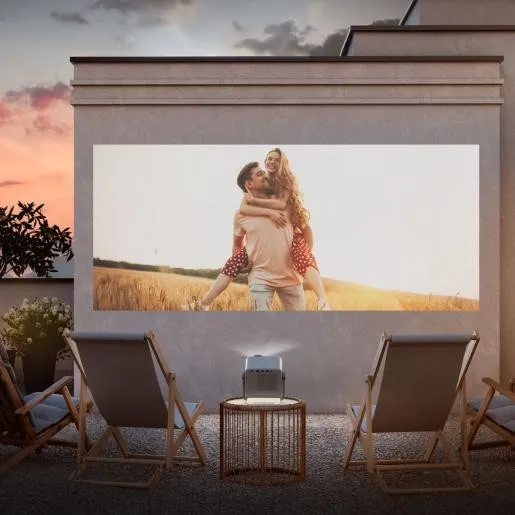 Uzyskaj nawet 100 cali zaledwie z 2 metrów, a aż do 200 cali przy 5,8 metra bez utraty jakości! Projektor automatycznie dopasowuje się do ekranów od 65 do 200 cali, gwarantując wyraźny, szczegółowy obraz w każdej scenerii w domu i na zewnątrz.