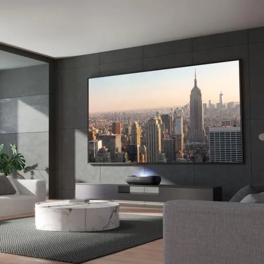 Laser TV z konsolą i ekranem będzie idealnie pasował do nowoczesnego stylu Twojego wnętrza.