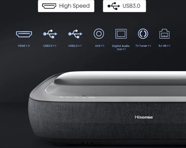 "HISENSE LASER TV 4K to unikalne połączenie projektora 4K krótkiego rzuty z funkcjami TV na ekstremalnie dużym ekranie, który idelanie wpasuje się w Twój salon.Dołączony w zestawie 120-calowy ekran ALR jest w pełni antyrefleksyjny i zapewnia brak odbić świetlnych, dzięki czemu możesz cieszyć się ogromnym telewizorem w dowolnym pokoju niezależnie od warunków świetlnych za oknem."