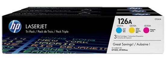 HP 126A zestaw 3 oryginalnych wkładów z tonerem LaserJet: błękitny/purpurowy/żółty