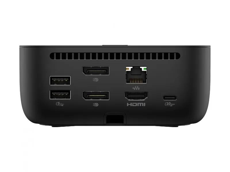 Urządzenie wyróżnia się kompaktową konstrukcją (ok. 12 × 12 cm), która pozwala uporządkować przestrzeń biurową i ograniczyć liczbę przewodów na biurku. Rozbudowany zestaw portów umożliwia podłączenie wielu monitorów w rozdzielczości do 4K oraz licznych urządzeń peryferyjnych jednocześnie. Intuicyjny pasek LED RGB i powiadomienia ekranowe informują o stanie pracy stacji, a przemyślane rozmieszczenie złączy – w tym portów z tyłu obudowy – ułatwia zarządzanie okablowaniem.