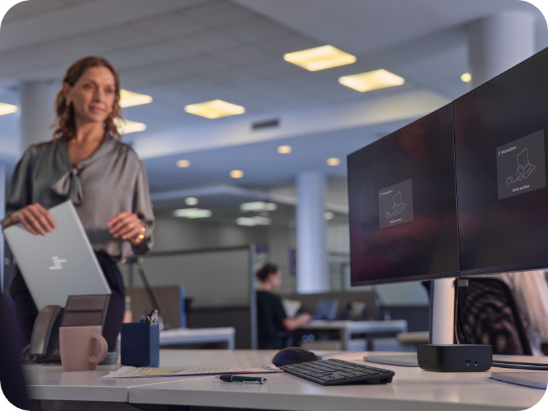 Model G6 wspiera zdalne zarządzanie dzięki integracji z platformą Poly Lens oraz narzędziami HP CMSL. Administratorzy IT mogą przeprowadzać automatyczne aktualizacje firmware’u, monitorować dane telemetryczne oraz identyfikować urządzenia za pomocą funkcji Electronic Tag (eTag) – po nazwie produktu, numerze seryjnym lub adresie MAC, niezależnie od lokalizacji sprzętu. Za bezpieczeństwo odpowiada pakiet HP Wolf Security, łączący HP Sure Start z podejściem Zero Trust Framework. Ochrona na poziomie firmware zabezpiecza stację przed nieautoryzowanym dostępem i atakami, czyniąc ją aktywnym i bezpiecznym elementem infrastruktury firmowej.