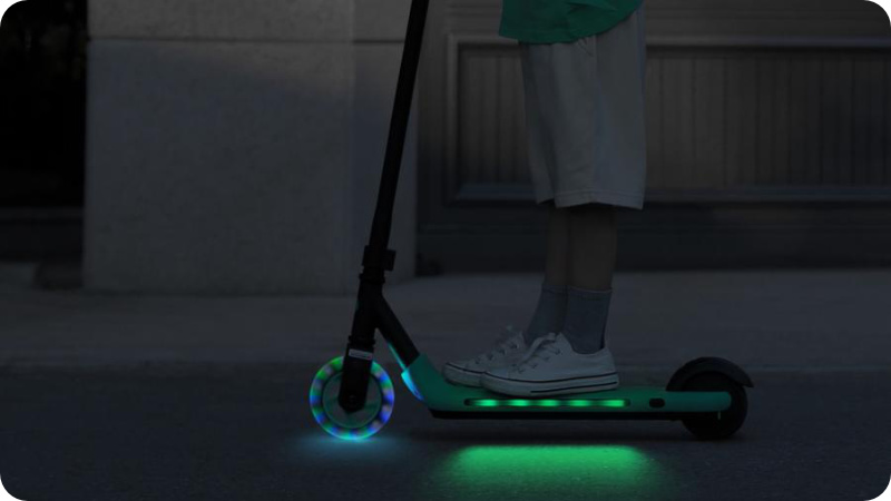 Przednia opona wykonana została z poliuretanu, natomiast tylna - z gumy. Opony są odporne na zużycie. Guma świetnie pochłania drgania podczas jazdy, co pozwala wygodnie poruszać się po mniej lub bardziej nierównych drogach. Wyposażenie modelu A6 w hamulec nożny oraz zapewnia niezawodność w nagłych sytuacjach i pozwala uzyskać możliwie najkrótszą drogę hamowania. Doskonałą widoczność zapewnia oświetlenie LED podestu oraz przedniego koła, które świeci się w ruchu. Łatwo demontowana kolumna kierownicy pozwala wygodnie przewozić hulajnogę Ninebot w bagażniku samochodu.