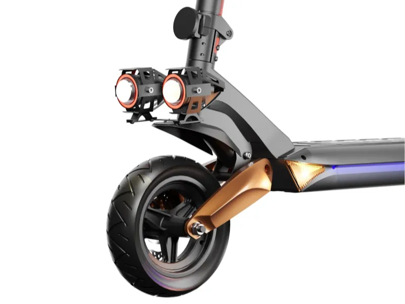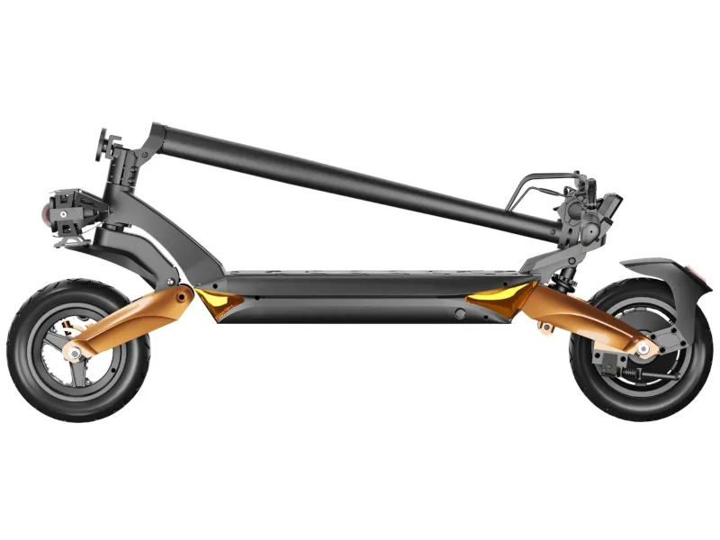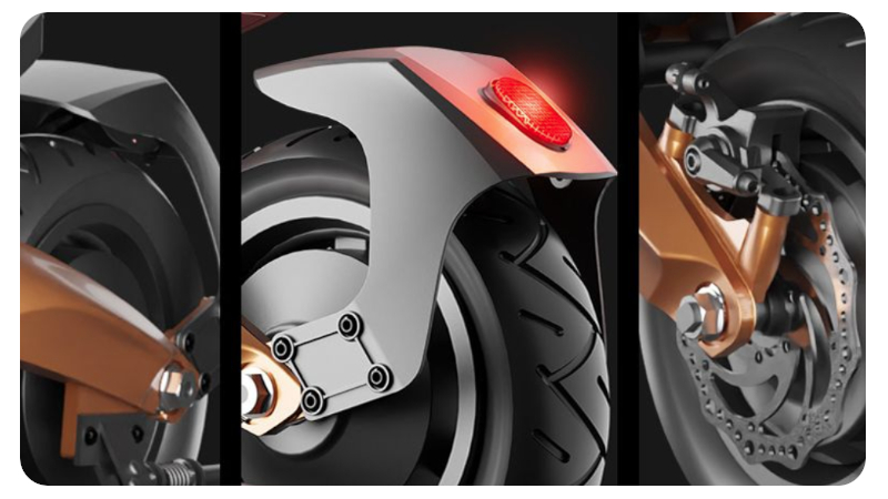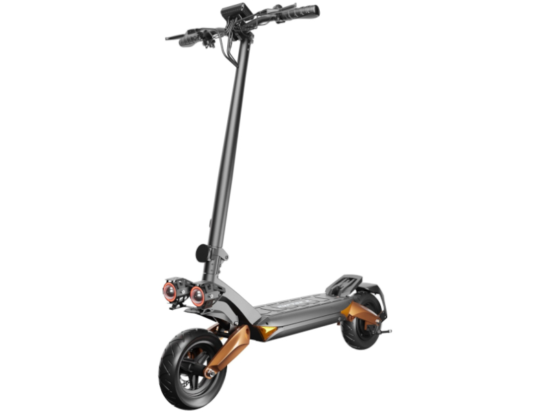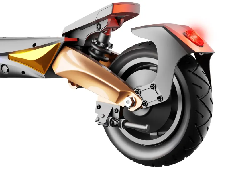 Podróżując na Ruptorze masz pewność, że zawsze jesteś bezpieczny. Dba o to nie tylko solidna rama, lecz także kierunkowskazy, które pozwalają na sygnalizowanie zamiarów wykonywania manewru skręcania, wymijania lub zmiany kierunku. Hamulce tarczowe o średnicy 140 mm zapewniają skuteczne i bezpieczne zatrzymanie pojazdu w różnych warunkach. System amortyzacji sprężynowej w tym modelu oparty jest na wahaczach, dzięki czemu hulajnoga doskonale niweluje wszelkie wstrząsy podczas jazdy po nierównym terenie. To pozwala na komfortowe podróżowanie i stabilne prowadzenie. Natomiast wysoki prześwit sprawia, że nie zmęczysz się podczas jazdy po wybojach. Ból kolan i nadgarstków już Cię nie dotyczy! Dodatkowo Ruptor R3 V3 jest wyposażony w 10-calowe, bezdętkowe koła, które znakomicie pochłaniają nierówności. Dzięki temu możesz poruszać się na hulajnodze nawet po kostce brukowej. Pokonuj bliskie i dalekie trasy bez żadnych zmartwień i ograniczeń.