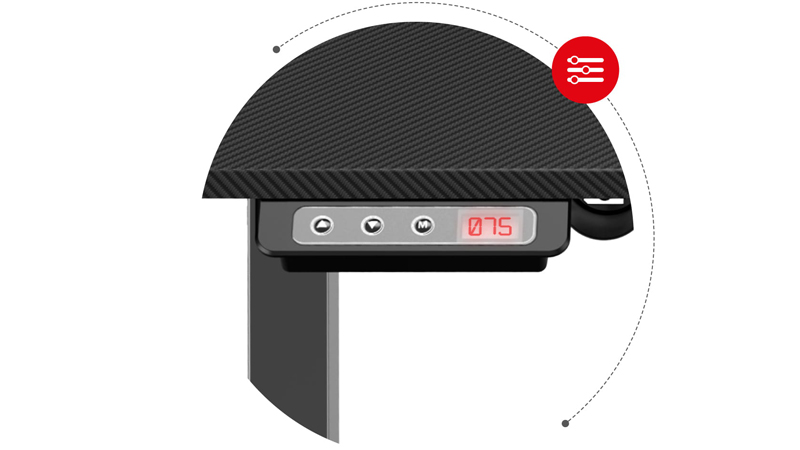 Wygodny panel sterowania umożliwia łatwą regulacje wysokości blatu. Opcja zapamiętywania umożliwia, w prosty sposób, powrót do poprzednich konfiguracji biurka. Panel został umiejscowiony w ergonomicznym miejscu, aby zawsze był pod ręką. Natomiast wyświetlacz LED wskazuję aktualna wysokość biurka z dokładnością do 1 cm. Dodatkowo, panel sterowania został wyposażony w moduł przypominający o konieczności zmiany pozycji pracy za biurkiem. Użytkownik do wyboru ma aż trzy opcje (30 minut, 45 minut lub 60 minut), a mebel przypomi Ci, abyś zmienił pozycję z siedzącej na stojącą i na odwrót.