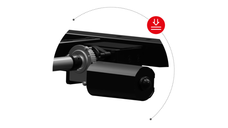 Silnik wysokiej klasy zapewnia płynny ruch nawet obciążonego (łączna waga aż do 80 kg) blatu. Precyzyjny ruch zapewnia wygodne użytkowanie, a cicha praca napędu nie przeszkadza w żadnych warunkach. Specjalny czujnik sprawia, że blat biurka cofnie się po napotkaniu jakiejkolwiek przeszkody. Mechanizm ten pozwala uniknąć przypadkowych uszkodzeń, co jest przydatne szczególnie w domowych warunkach np. przy posiadaniu dzieci lub zwierząt domowych.