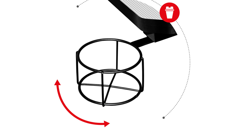 Specjalny, wygodny uchwyt na napoje. Łatwo i bezpiecznie można przechowywać w nim puszki, butelki, czy kubki. To rozwiązanie pozwoli uniknąć zalania sprzętu. Uchwyt można łatwo i szybko złożyć- schować pod biurko.