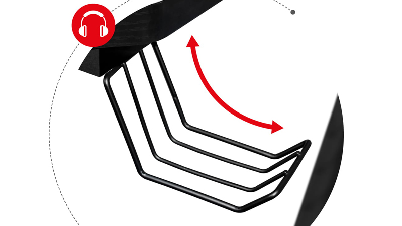 Wygodny, podręczny uchwyt na słuchawki, który podobnie jak uchwyt na kubek można złożyć – schować pod biurko.