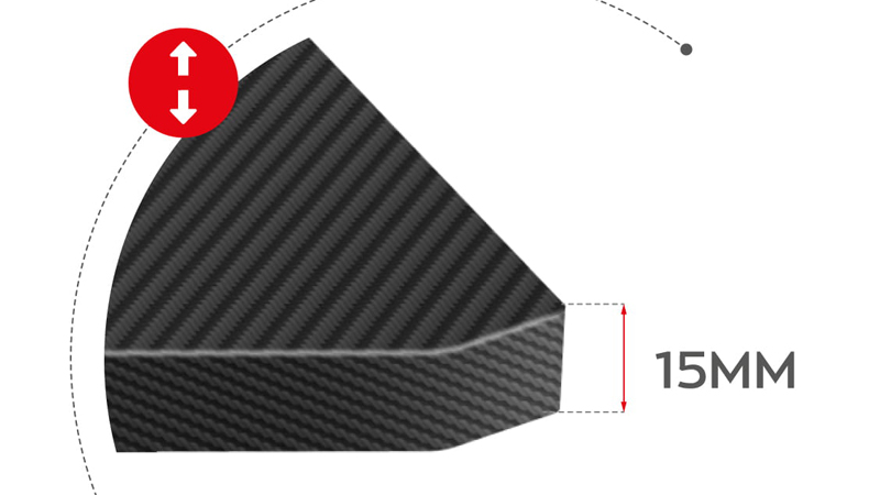 Blat biurka Hero 2.8 został pokryty specjalna powłoką na wzór karbonu. Dzięki takiemu zabiegowi, blat jest niezwykle wytrzymały oraz odporny na zarysowania i zabrudzenia. Ponadto, jego struktura zapobiega przesuwaniu się klawiatury, a sam wygląd biurka jest nowoczesny.