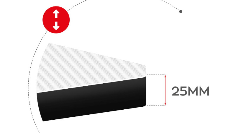 Blat o grubości 25 mm, wykonany z trwałej płyty HDF PCV, zapewni trwałość i stabilność nawet przy bardzo dużym nacisku. Został on pokryty specjalną powłoką na wzór karbonu. Jest to niezwykle praktyczne rozwiązanie, blat jest wytrzymał, odporny na zarysowania i zabrudzenia, a jednocześnie świetnie wygląda.