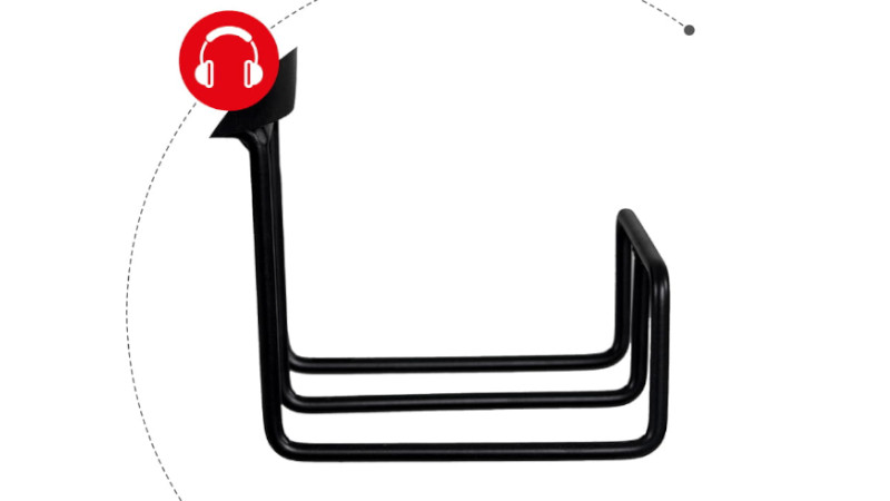 Wygodny, podręczny uchwyt na słuchawki. Podczas gdy nie używasz słuchawek, te wiszą bezpiecznie, nie zajmując przestrzeni na biurko.