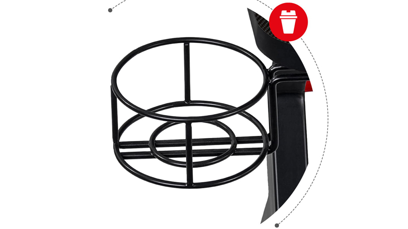 Specjalny, wygodny uchwyt na napoje. Łatwo i bezpiecznie można przechowywać w nim puszki, butelki, czy kubki. To rozwiązanie pozwoli uniknąć zalania sprzętu. Uchwyt można łatwo i szybko złożyć- schować pod biurko.