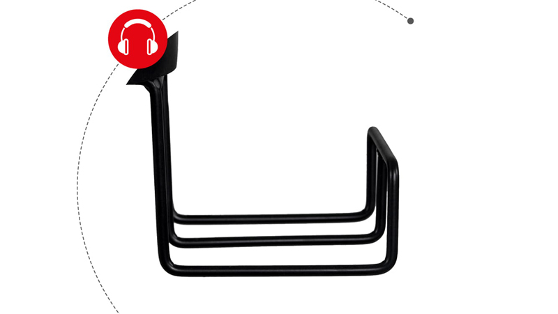 Wygodny, podręczny uchwyt na słuchawki. Podczas gdy nie używasz słuchawek, te wiszą bezpiecznie, nie zajmując przestrzeni na biurko.