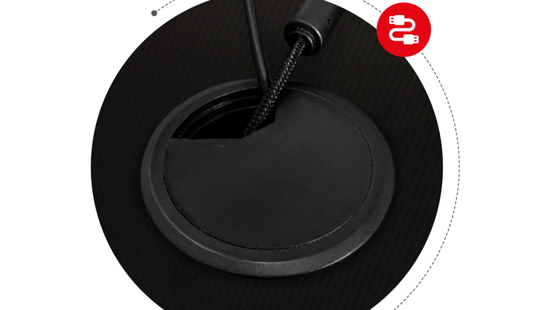 Biurko Huzaro Hero 5.0 posiada dwa wloty na organizację przewodów. Wloty zamontowano po dwóch stronach biurka, dzięki czemu niezależnie od instalacji Twoje stanowisko gamingowe zawsze będzie uporządkowane.