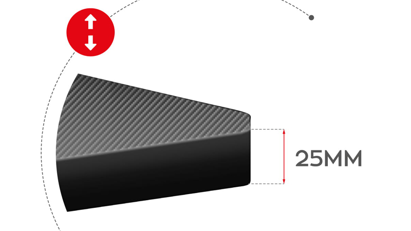 Blat o grubości 25 mm, wykonany z trwałej płyty HDF PCV, zapewni trwałość i stabilność nawet przy bardzo dużym nacisku. Został on pokryty specjalną powłoką na wzór karbonu. Jest to niezwykle praktyczne rozwiązanie, blat jest wytrzymał, odporny na zarysowania i zabrudzenia, a jednocześnie świetnie wygląda.