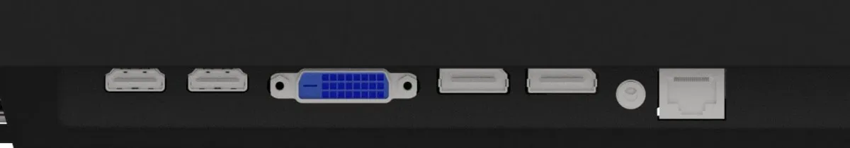| Gniazda we/wy: | 2 x RS-232 (COM), 3 x HDMI, 2 x DisplayPort, 2 x USB 2.0, 1 x 3,5 mm minijack, 1 x RJ-45 LAN |