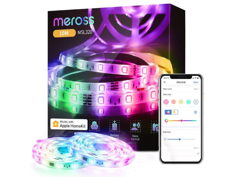 Inteligentna tśma LED Meross MSL320 umożliwi Ci w oryginalny sposón ozdobić pomieszczenie w Twoim domu i nadać im jedyny w swoim rodzaju klimat. Możesz swobodnie dostosować światło w zależności od swoich potrzeb i nastroju, zmieniając jego jasność lub kolor. Za pomocą tej taśmy ozdobisz szafki kuchenne, ścianę, biurko lub półki. Dodatkowo tym oświetleniem możesz sterować za pomocą swojego smartfona, korzystając z aplikacji mobilnej lub platformy Apple HomeKit i Asystenta Google. Co najważniejsze taśma może pracować z siecią Wi-Fi, dzięki czemu nie wymaga dodatkowego HUB-a. W opakowaniu znajdziesz dwie taśmy o długości 5 metrów każda, co daje 10 metrów do dyspozycji.